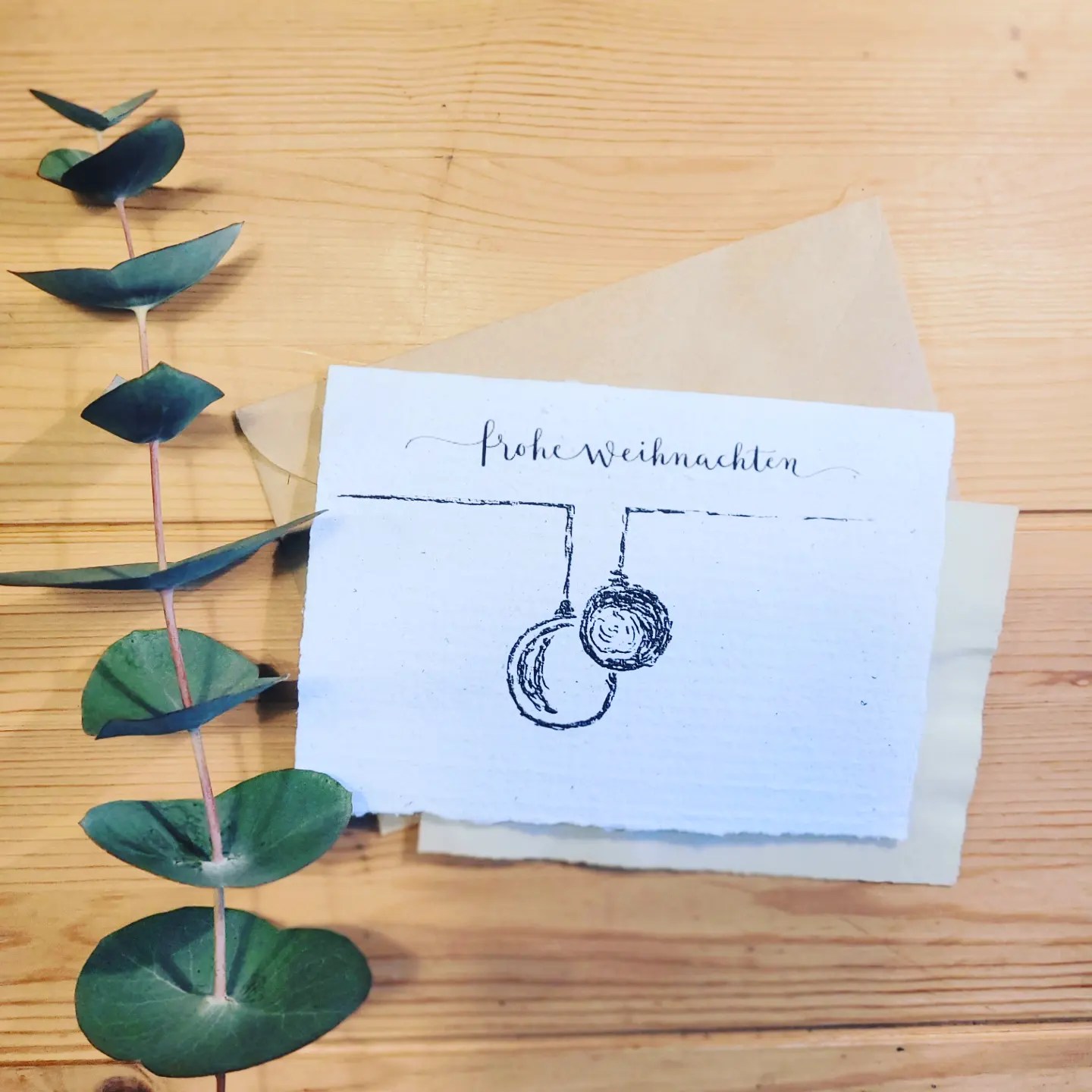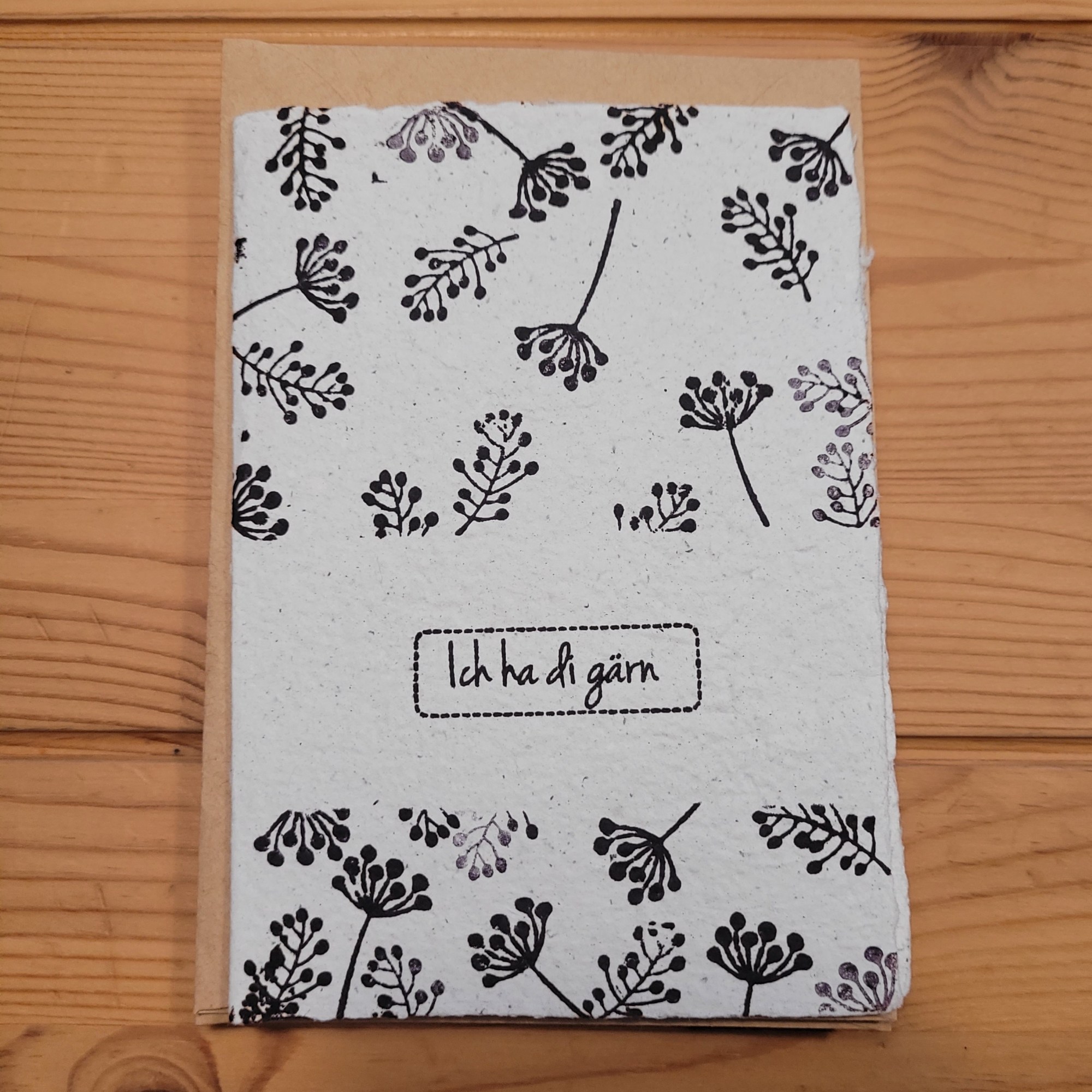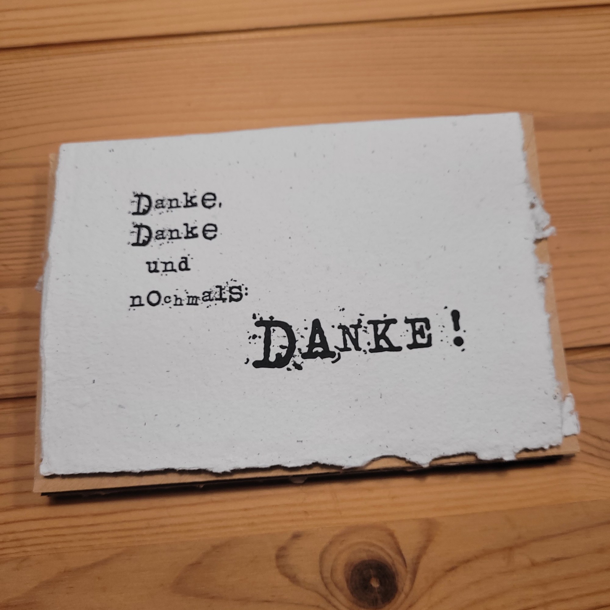 Mit wenigen Worten kann man Vieles sagen. Die Doppel Karten haben auf der Innenseite eine Blatter aus Papierresten mit Kaffe gemalt. So kannst du deine Worten schreiben. Grosse A6