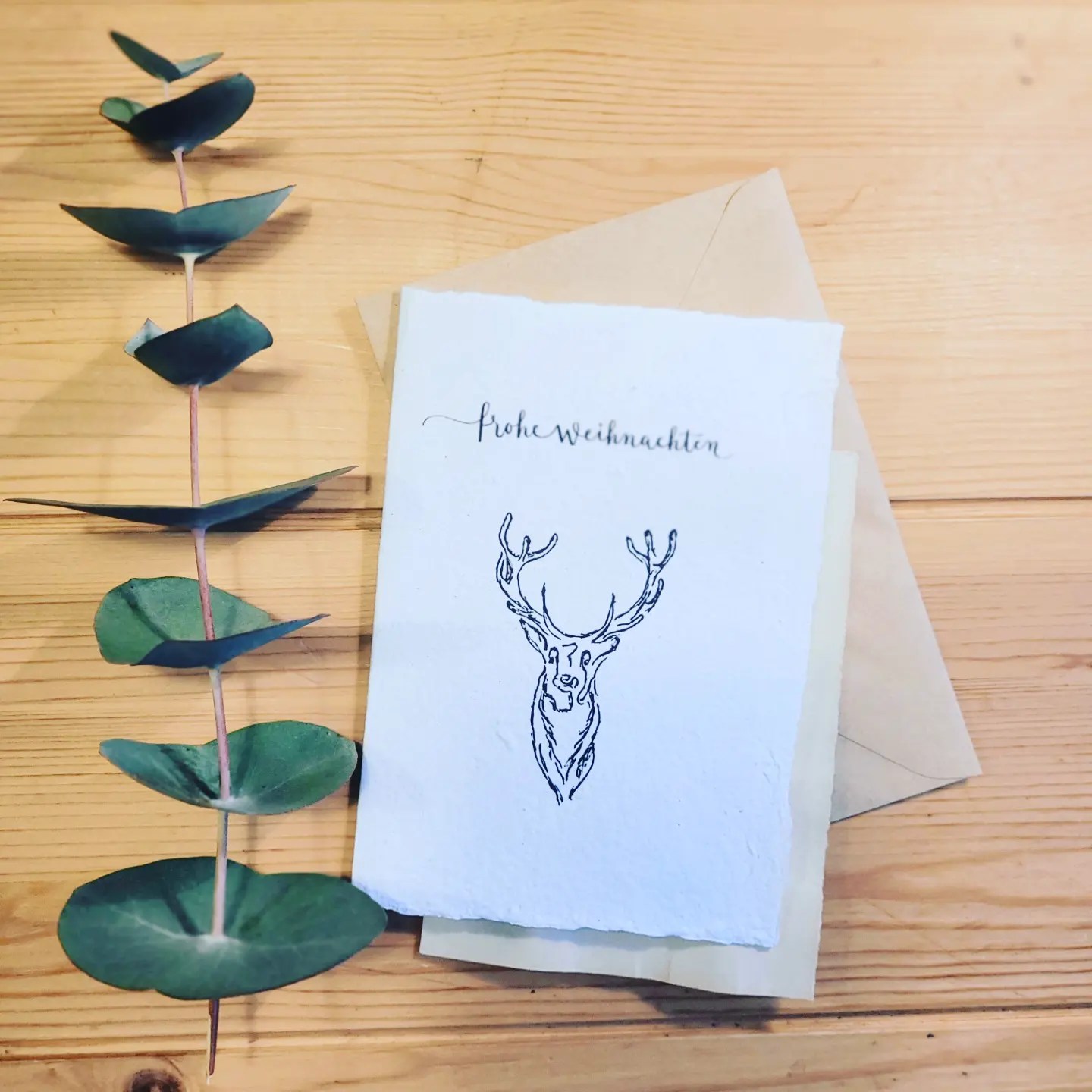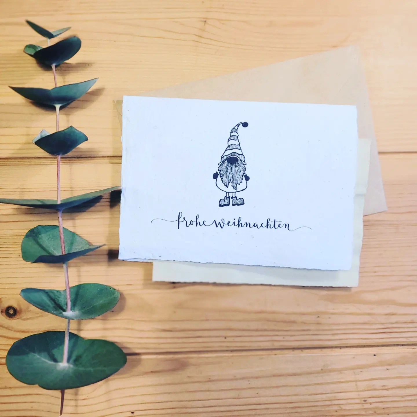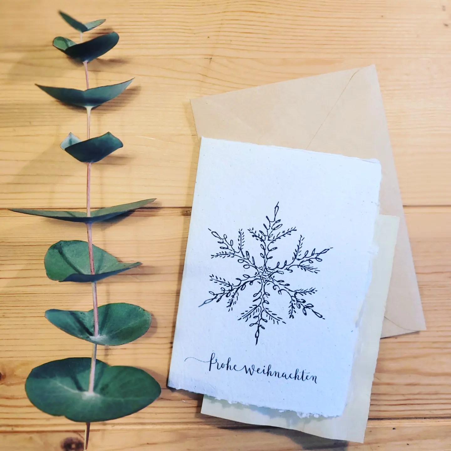 Mit wenigen Worten kann man Vieles sagen. Die Doppel Karten haben auf der Innenseite eine Blatter aus Papierresten mit Kaffe gemalt. So kannst du deine Worten schreiben. Grosse A6